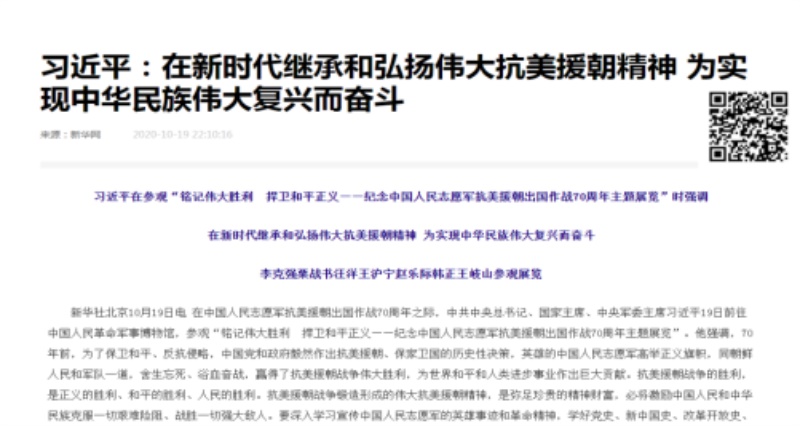 1. 学习习近平重要讲话精神:在新时代继承和弘扬伟大抗美援朝精神 为实现中华民族伟大复兴而奋斗