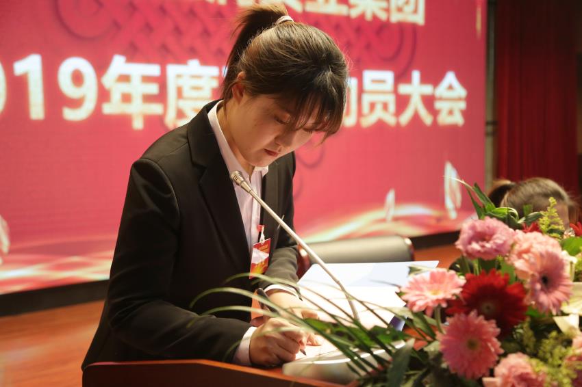下午1:30分,大会在庄严的国歌声中隆重开幕。首先,集团董事长张爱平同志对2019年五个新项目进行授牌。