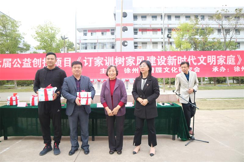 20191011日下午,徐州市民政局第七届公益创投项目《订家训树家风建设新时代文明家庭》活动启动仪式在我校隆重举行。我校师生在王玉府副校长和团委戚其彬书记带领下参加了活动。
