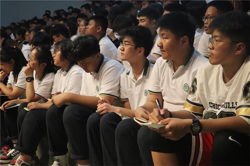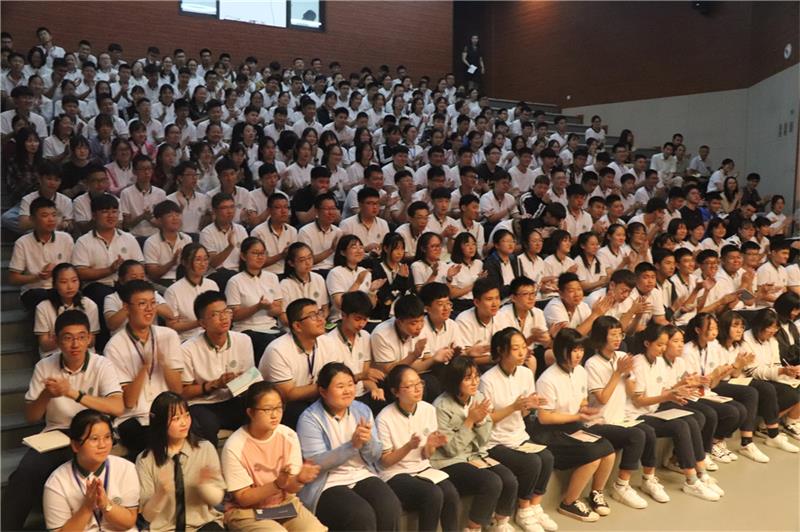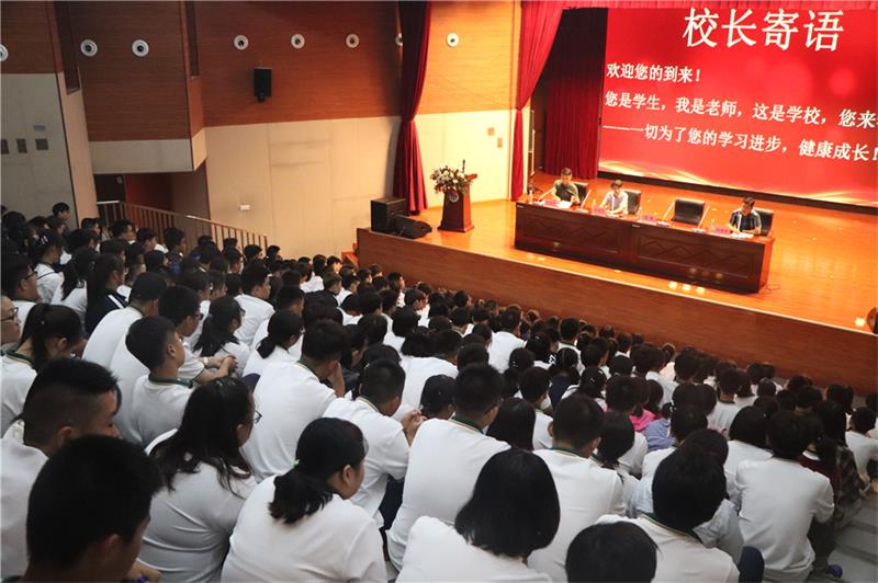 树恩中学高中部领导:钱益民校长、赵静主任、刘同华主任和年级组程建军主任莅临会场,和高中部全体师生济济一堂,共诉对新学期的畅想对未来的展望。