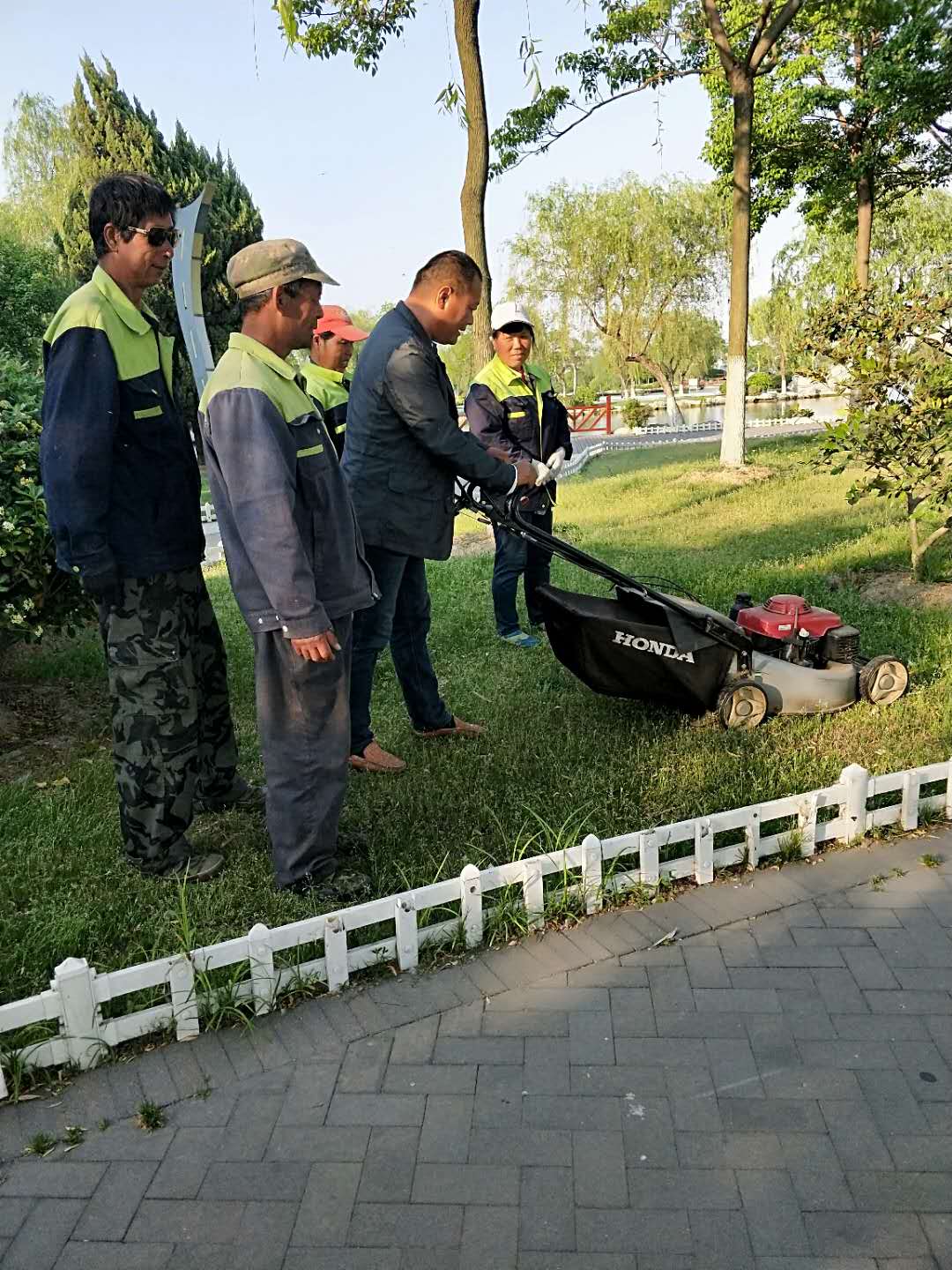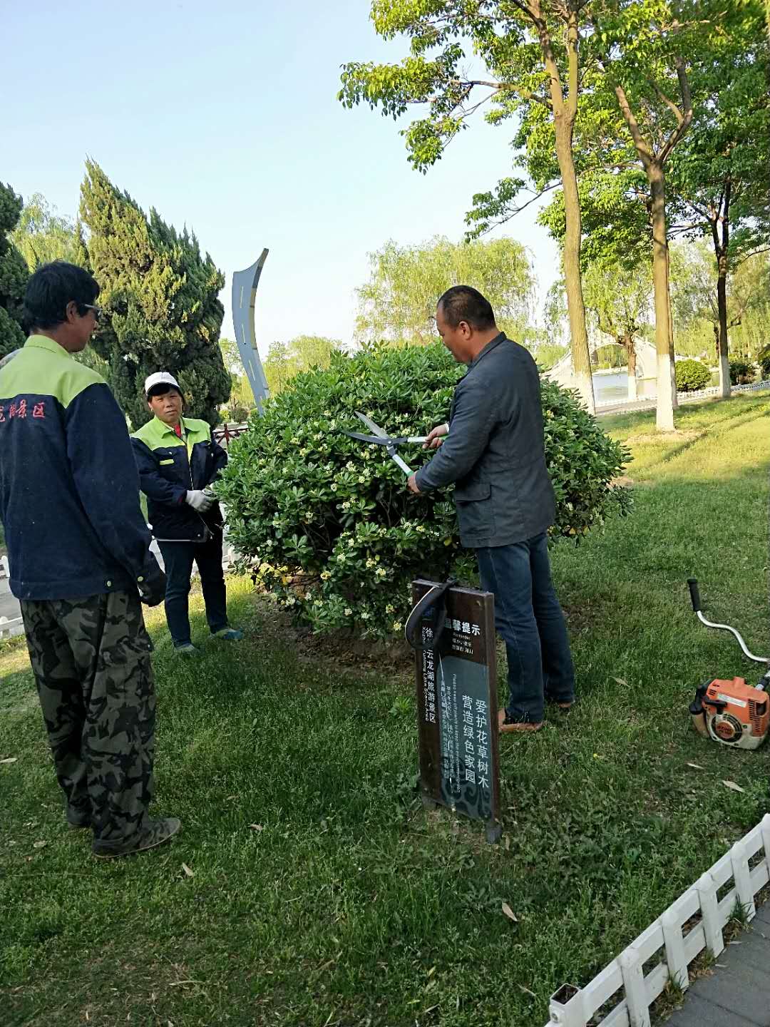 讲解剪草机及绿篱机的操作要领及程序 组织主管及班长进行机械实操 组织学习修剪的基本要领及程序 班前组织员工集中学习,讲安全生产和劳动纪律