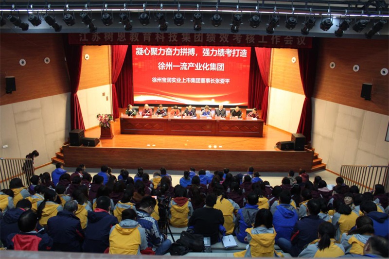 2019年11月23日,上海股交所上市企业9U在线、江苏树恩教育科技集团绩效考核工作会议在徐州市树恩中学高铁校区小剧场召开,来自两大集团的机关部门工作人员、八大产业领导班子成员、各产业项目部负责人、树恩中学高铁校区和复兴北校区以及树恩一院三中心全体教职员工共300余人参加了会议。两大集团董事长张爱平出席会议并作重要讲话。
